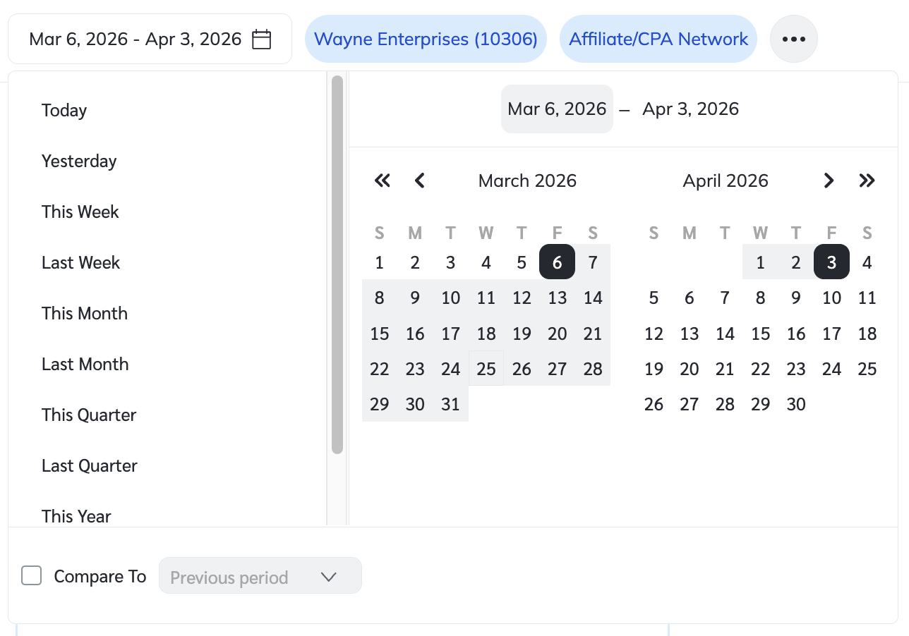 2. Unter dem Berichtsnamen können Sie einen **Datumsbereich**auswählen oder eingeben und bei Bedarf den Vergleichszeitraum festlegen.