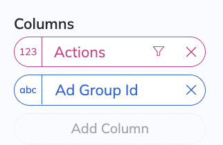 * aus ![](https://1698965099-files.gitbook.io/~/files/v0/b/gitbook-x-prod.appspot.com/o/spaces%2FwMLlMoFBtKJa8ptd3zaw%2Fuploads%2Fgit-blob-d05e21635c52fff94d35ca4c6b05c1deecc699ef%2F768d04f4d7e1b5b745577812f7d67db99d988bfc34749b6e575a04438d6cee36.svg?alt=media) **\[Entfernen]** um Spalten zu entfernen.