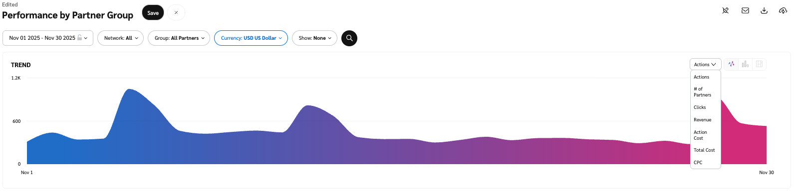 3. Sélectionnez [Performance par groupe de partenaires](https://app.impact.com/secure/advertiser/report/viewReport.report?handle=att_adv_performance_by_mp_group).
