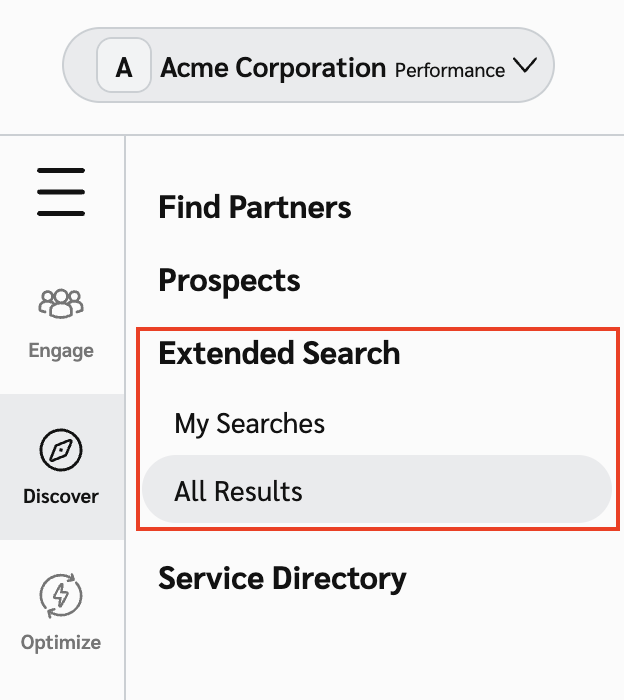 * または、特定の検索の結果のみを表示するには、次を選択します。 [My Searches](https://app.impact.com/secure/advertiser/discover/fr/discover/extended-search.ihtml?route=/searches)、次に目的の検索を選択します。