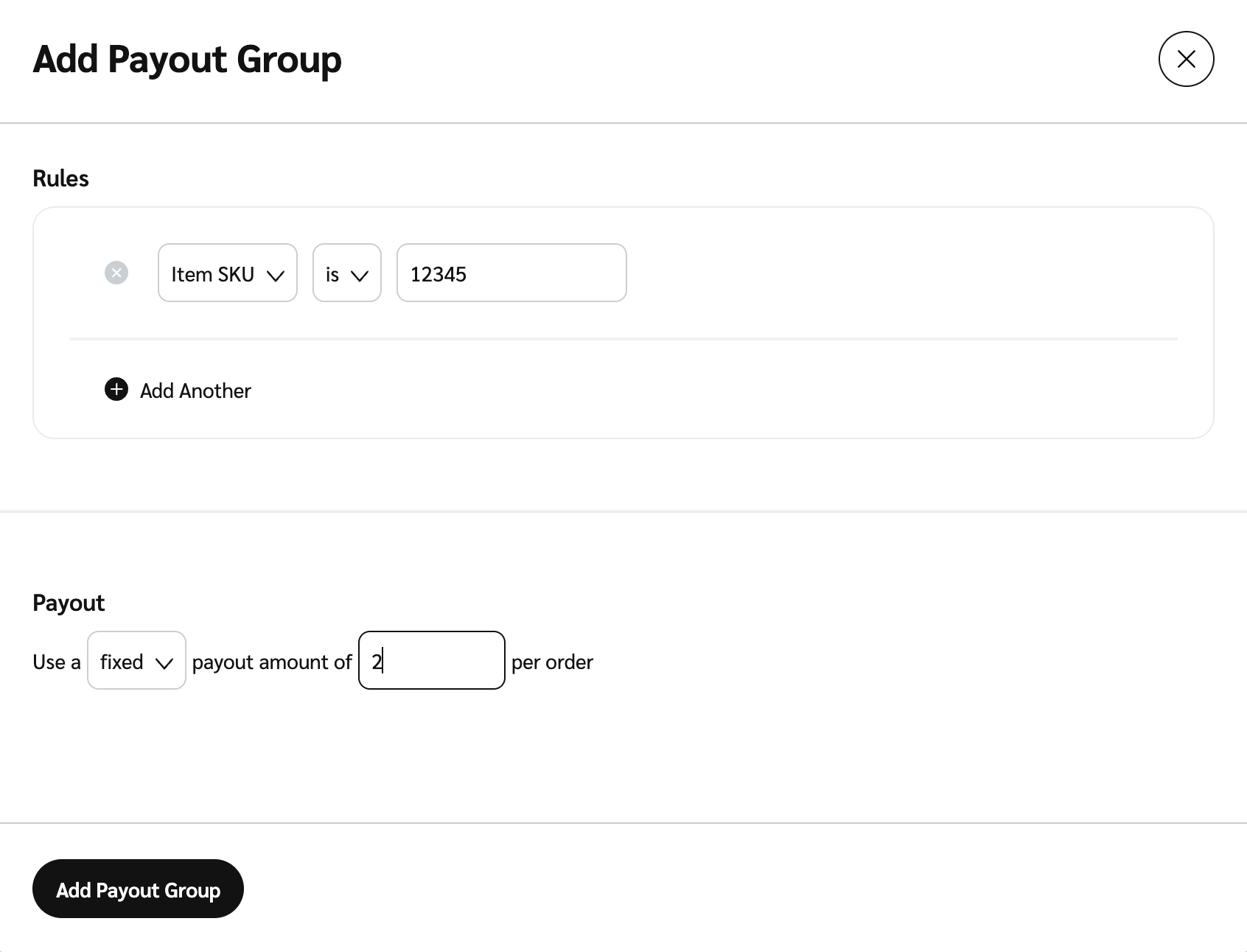 Add Another to create a second rule within the same payout group.