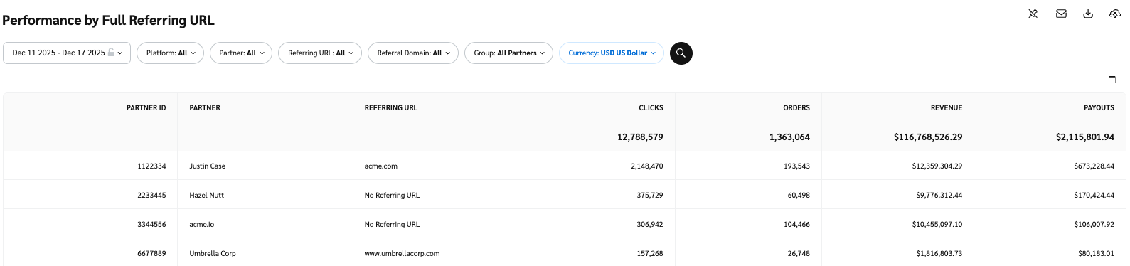 | Pagamentos        | O pagamento total pelas vendas geradas por parceiros a partir de conversões em um domínio específico.                 |