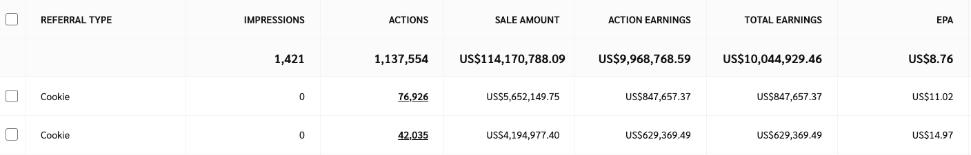 | 行动收益                               | 您因推动导致转化的推荐类型流量而获得的补偿金额。                                                                                   |